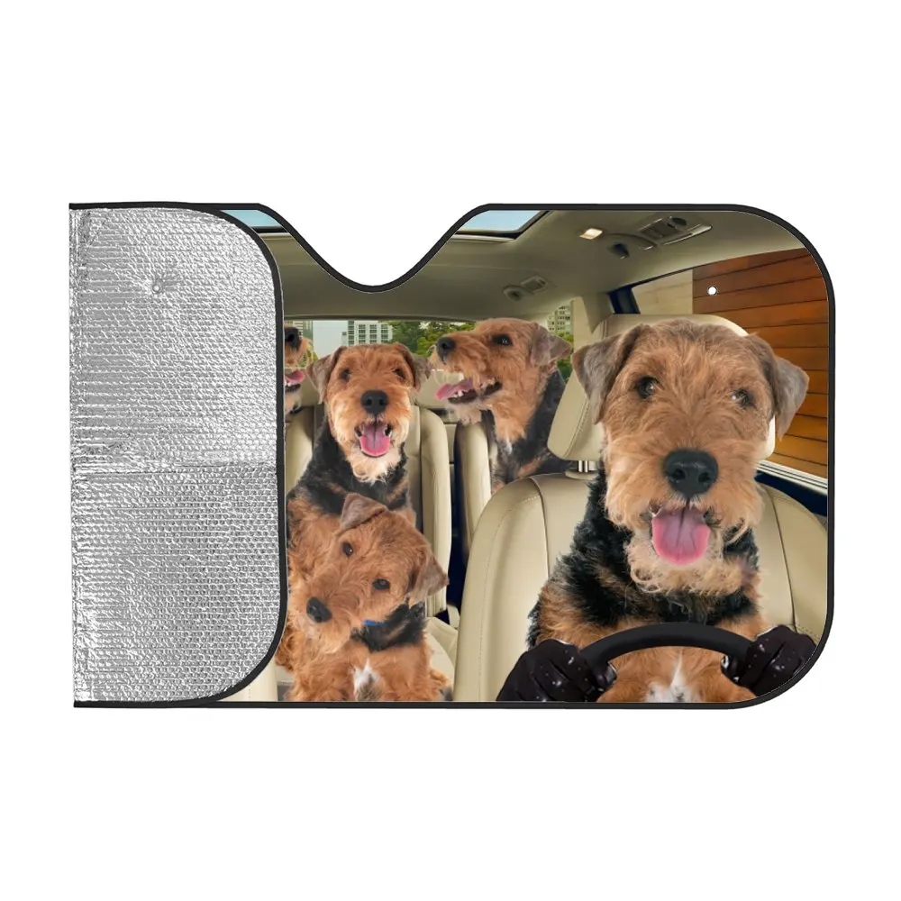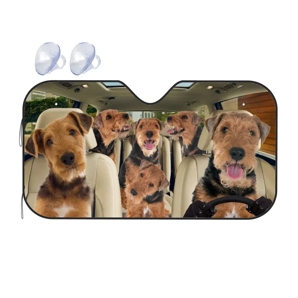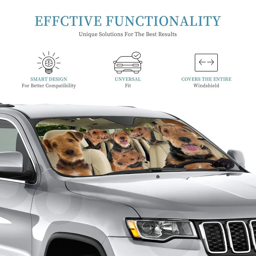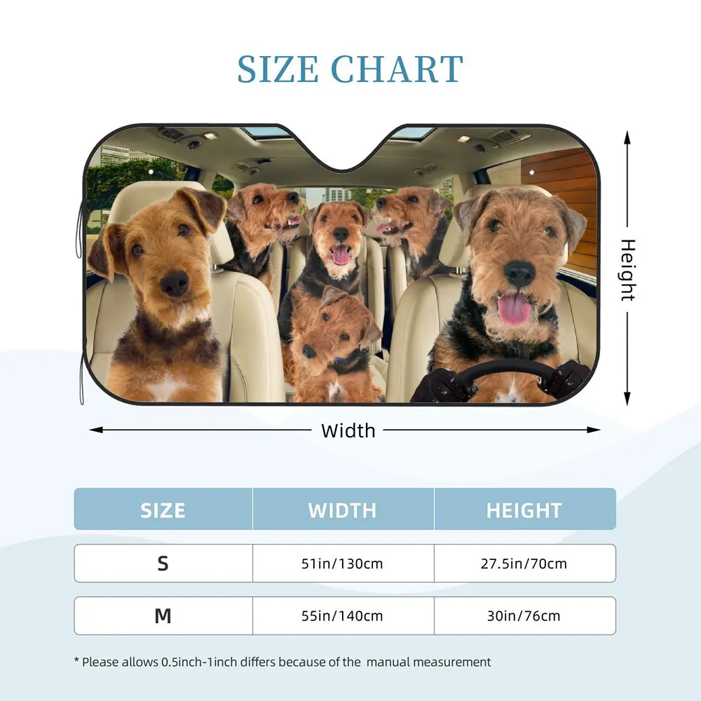 Airedale Terrier Dog Driving Car Interior Front Windshield Sun Shade,Sheltie Sunshade for Truck SUV- Blocks Uv Rays Protector